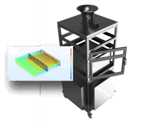 Design of air purification systems for environments with radioactive particulate dispersion.
